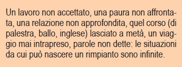 Potremo concludere questo paragrafo dicendo che avere rimpianti fa parte della vita? Sì. E, ripeto, è una realtà che non deve rendervi tristi o frustrati, anzi.
